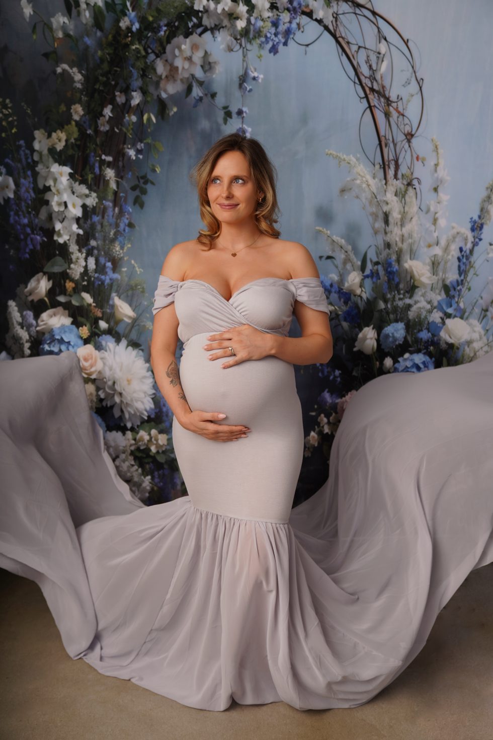 Papa und Geschwister sind natürlich herzlich zum Shooting willkommen. Das Fotoshooting kann im Studio oder draußen in der Natur stattfinden. Ich verfüge über einen großen Kundenkleiderschrank mit Kleidern in vielen Größen und Farben, die speziell für Babybauchfotoshootings ausgewählt wurden. Sicherlich ist für jede werdende Mami etwas Passendes dabei, aber natürlich darfst du auch dein eigenes Lieblingsoutfit mitbringen.